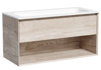 Тумба подвесная SANCOS Marmi 1.0 995х445х520 c одним ящиком оснащенным доводчиками скрытого монтажа с системой Soft close (плавного закрывания) и открытой нишей, c фрезерованной ручкой по всей длине фасада, дуб галифакс натуральный, арт. MR1.0100EG