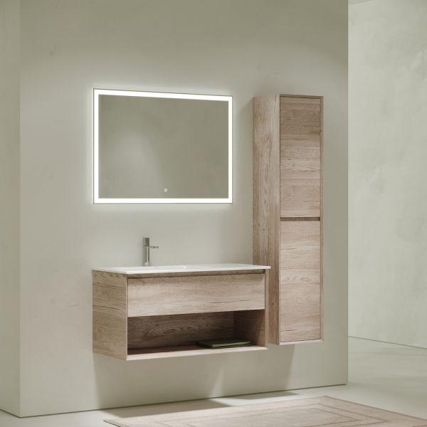Тумба подвесная SANCOS Marmi 1.0 левая, 995х445х520, c одним ящиком оснащенным доводчиками скрытого монтажа с системой Soft close (плавного закрывания) и открытой нишей, c фрезерованной ручкой по всей длине фасада, дуб галифакс натуральный, арт. MR1.0100LEG