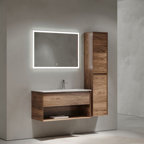 Тумба подвесная SANCOS Marmi 1.0 правая, 995х445х520 левая, c одним ящиком оснащенным доводчиками скрытого монтажа с системой Soft close (плавного закрывания) и открытой нишей, c фрезерованной ручкой по всей длине фасада, дуб чарльстон, арт.MR1.0100RECH