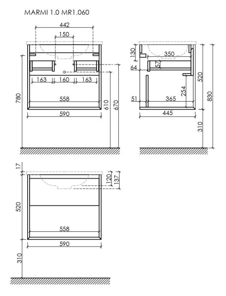 Подвесная тумба под раковину Sancos Marmi 1.0 MR1.060EG 59см дуб галифакс натуральный