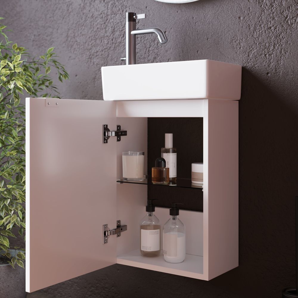 Подвесная тумба под раковину Sancos Mini MN35WL левая 35см белый глянец купить