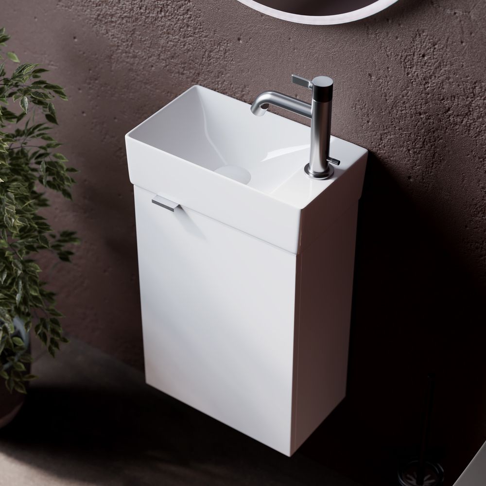 Подвесная тумба под раковину Sancos Mini MN35WR правая 35см белый глянец купить