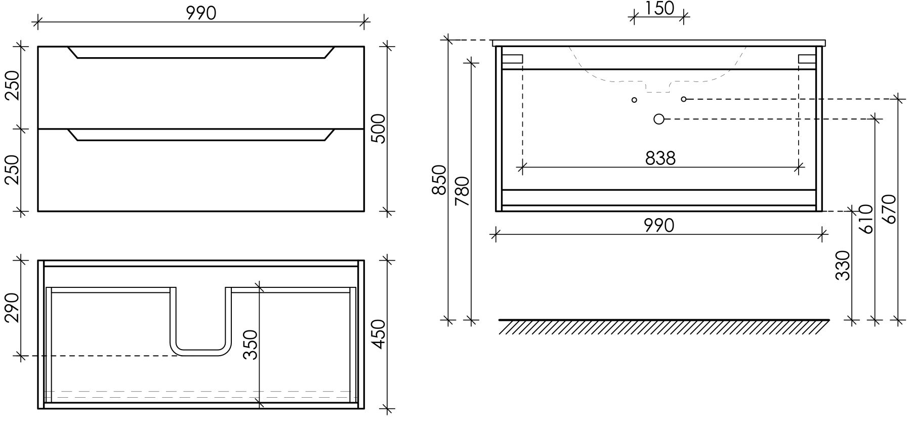 Подвесная тумба под раковину Sancos Norma 2.0 NR2.0100W 100см белый глянец