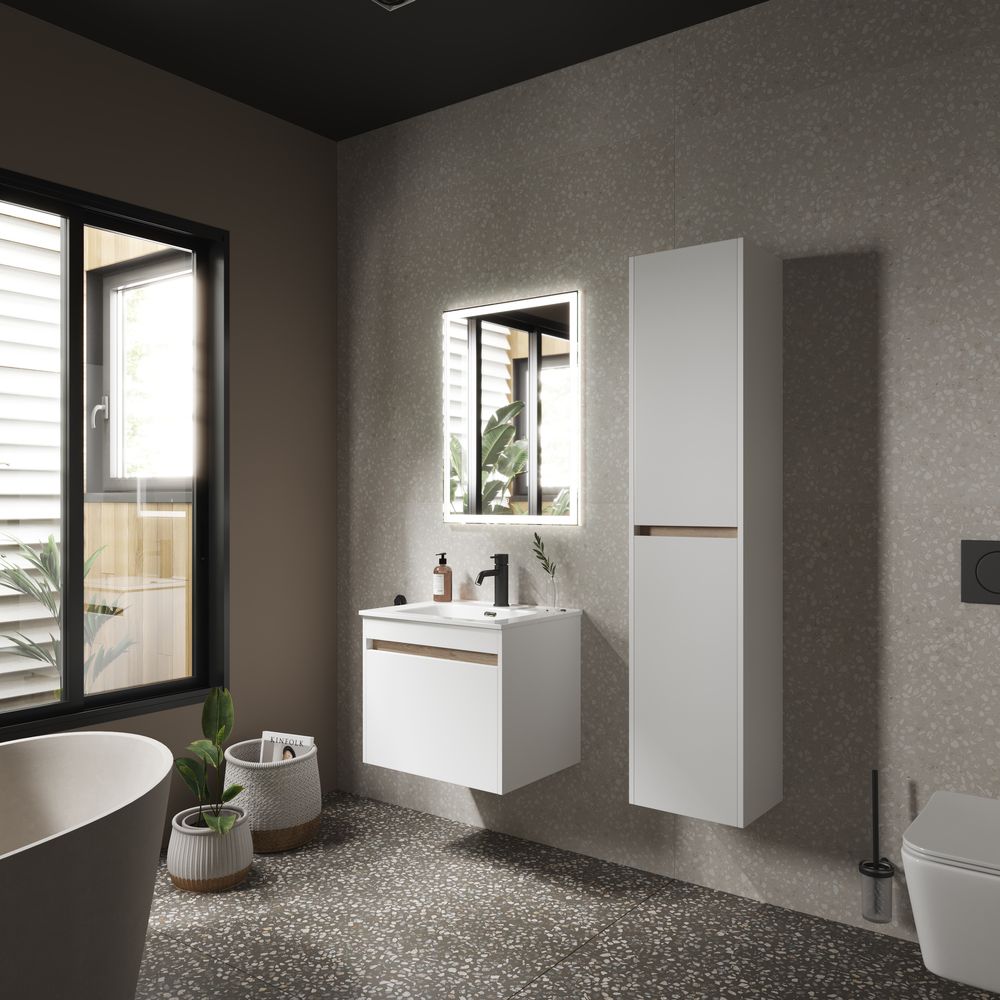 Подвесная тумба под раковину Sancos Smart SM60W 60см белый глянец купить