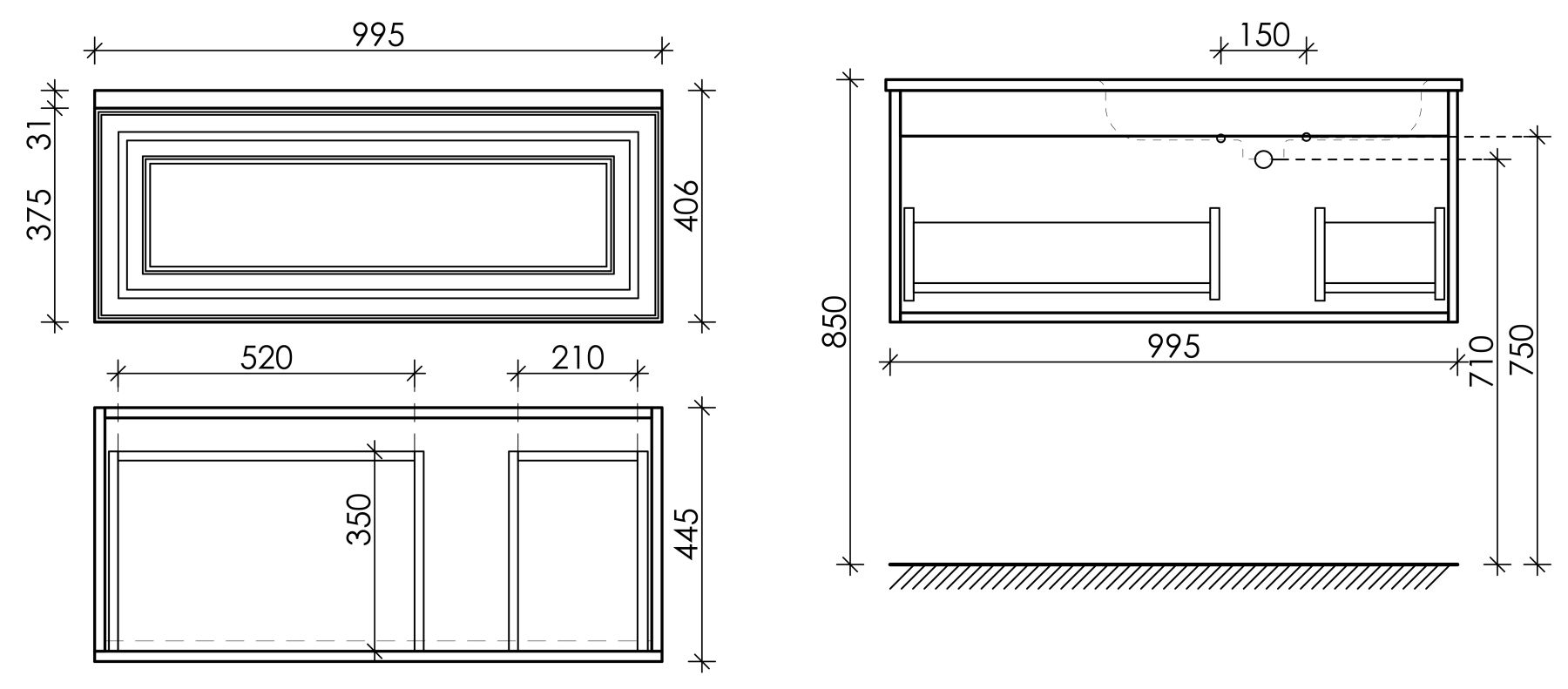 Подвесная тумба под раковину Sancos Very VR100RSM правая 100см Doha Soft купить