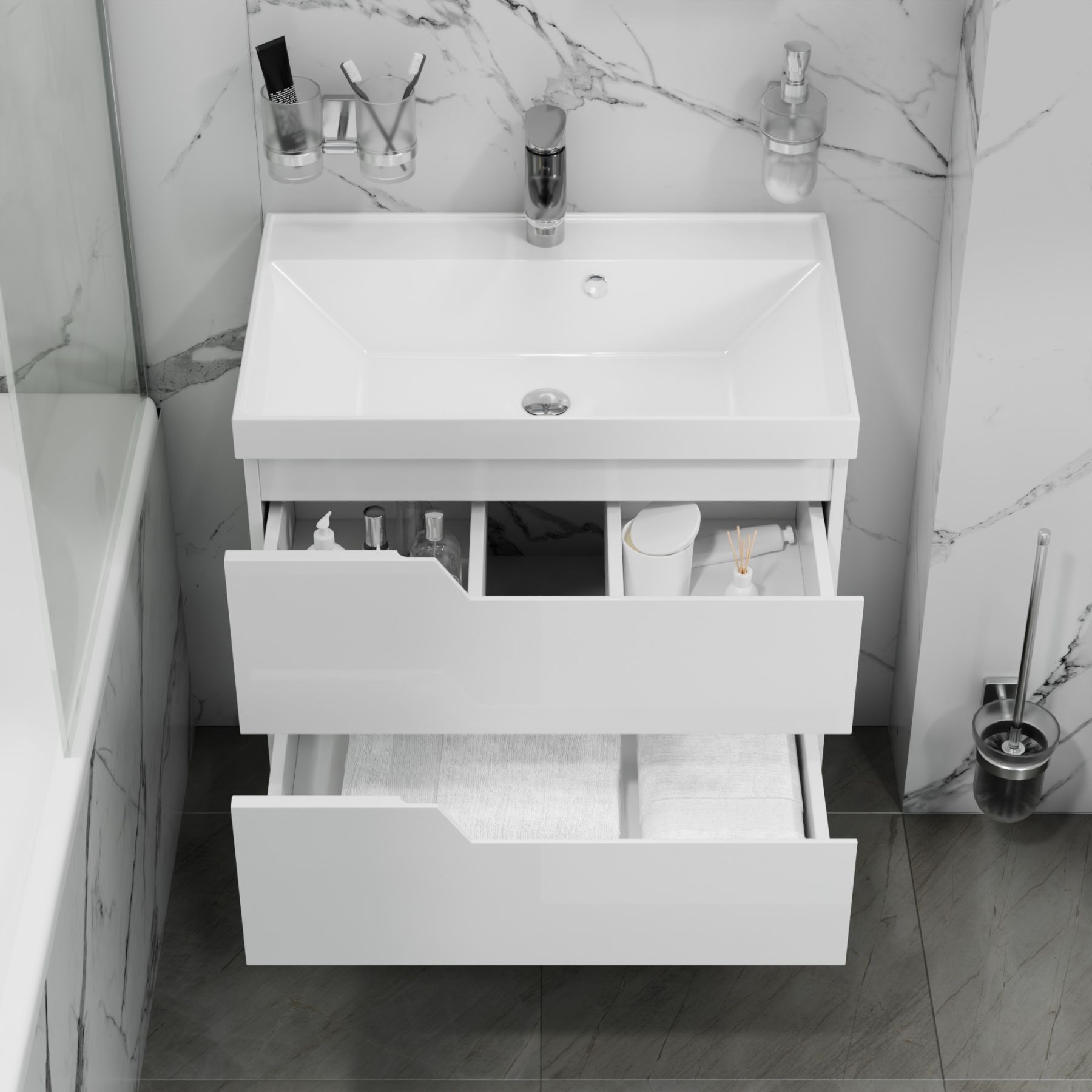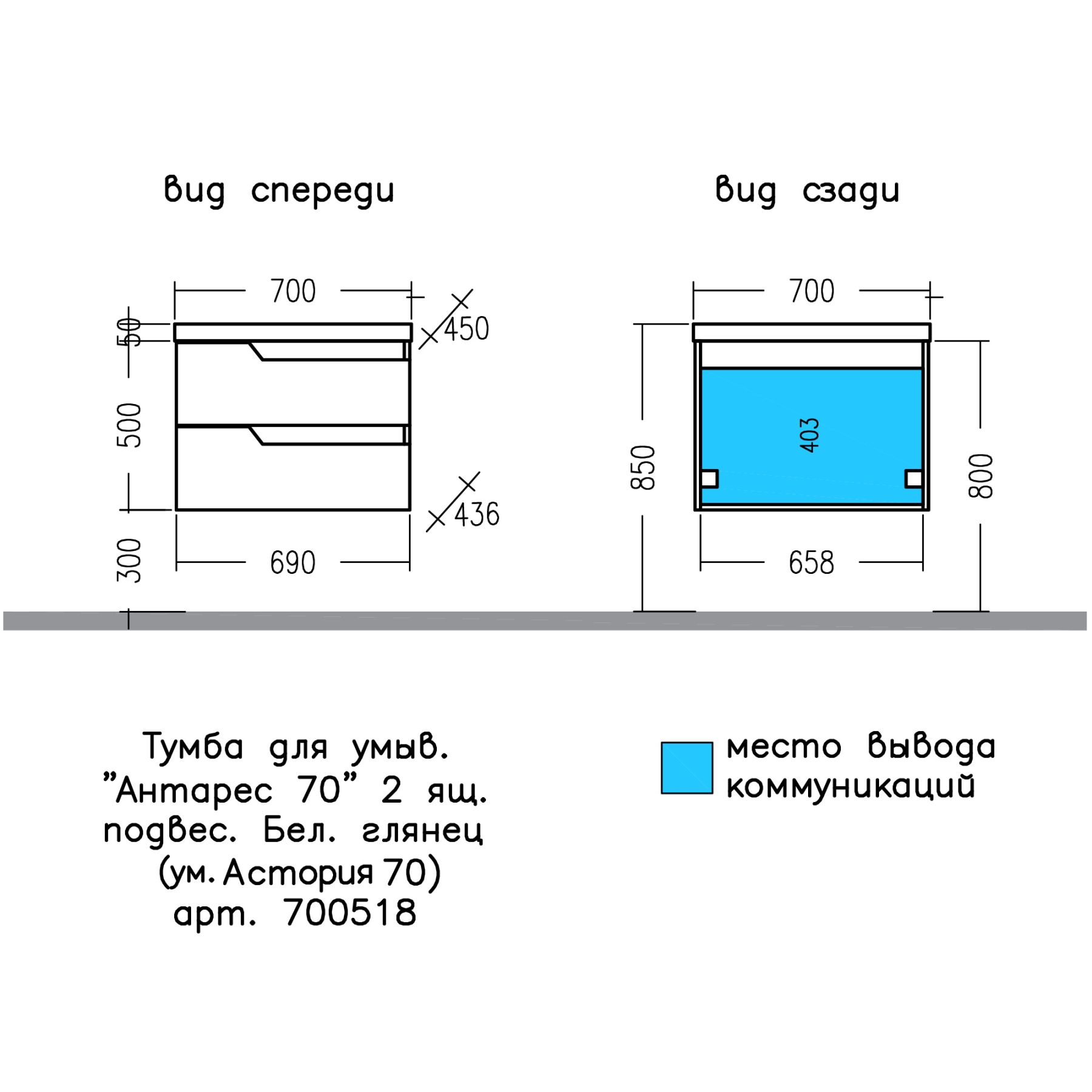 Подвесная тумба под раковину Санта Антарес 700518 70 см белый глянец купить