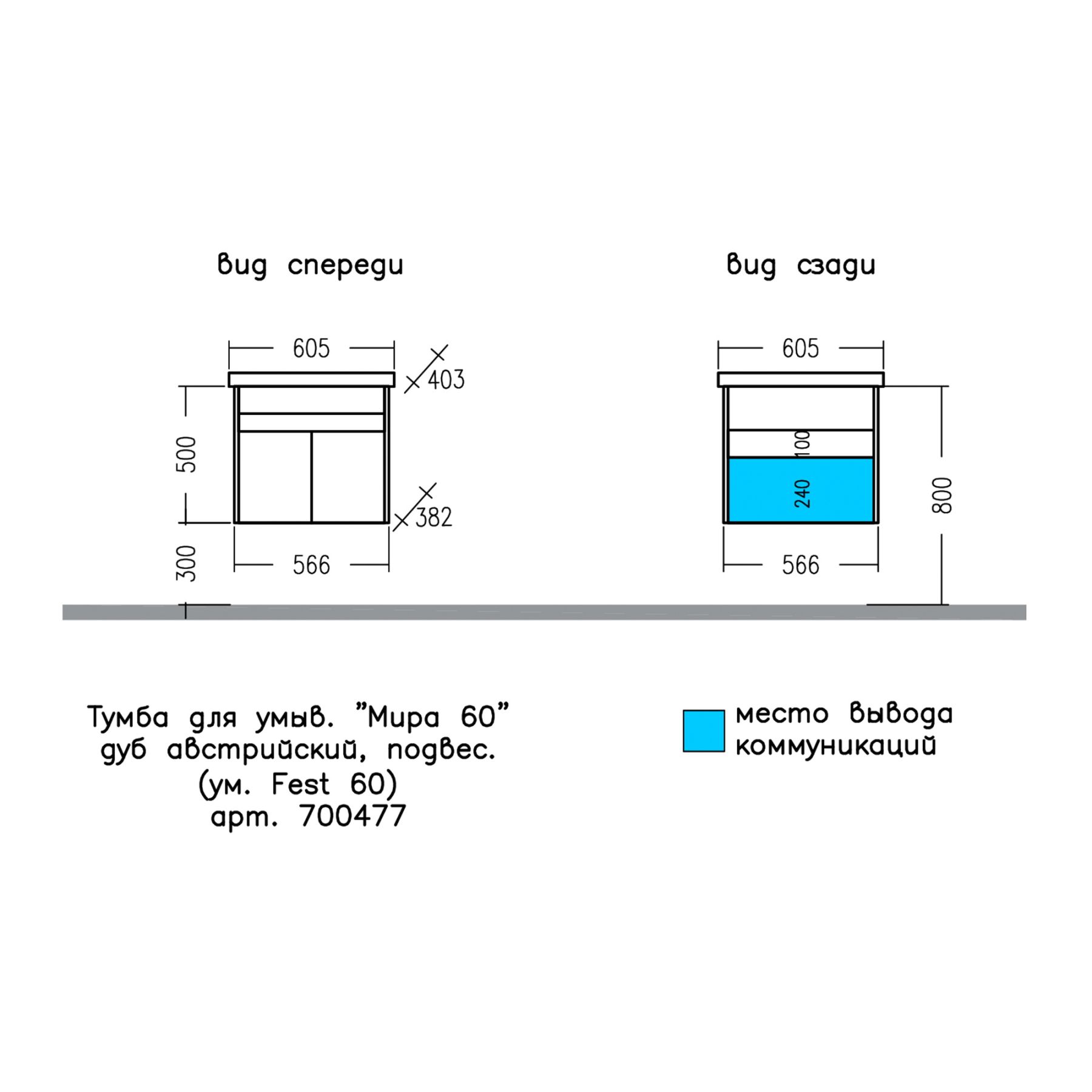 Тумба Мира 60 изготовлена под фаянсовый умывальник Sanita Fest 60.
