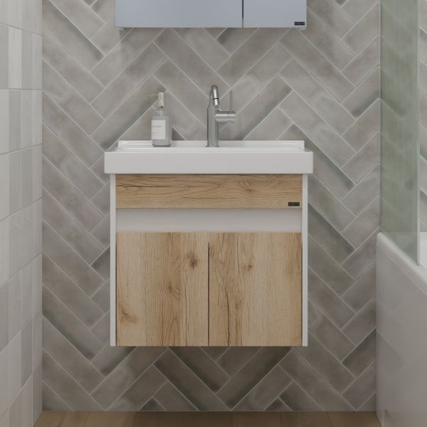 Подвесная тумба под раковину Санта Мира 700477 60 см дуб австрийский/белый