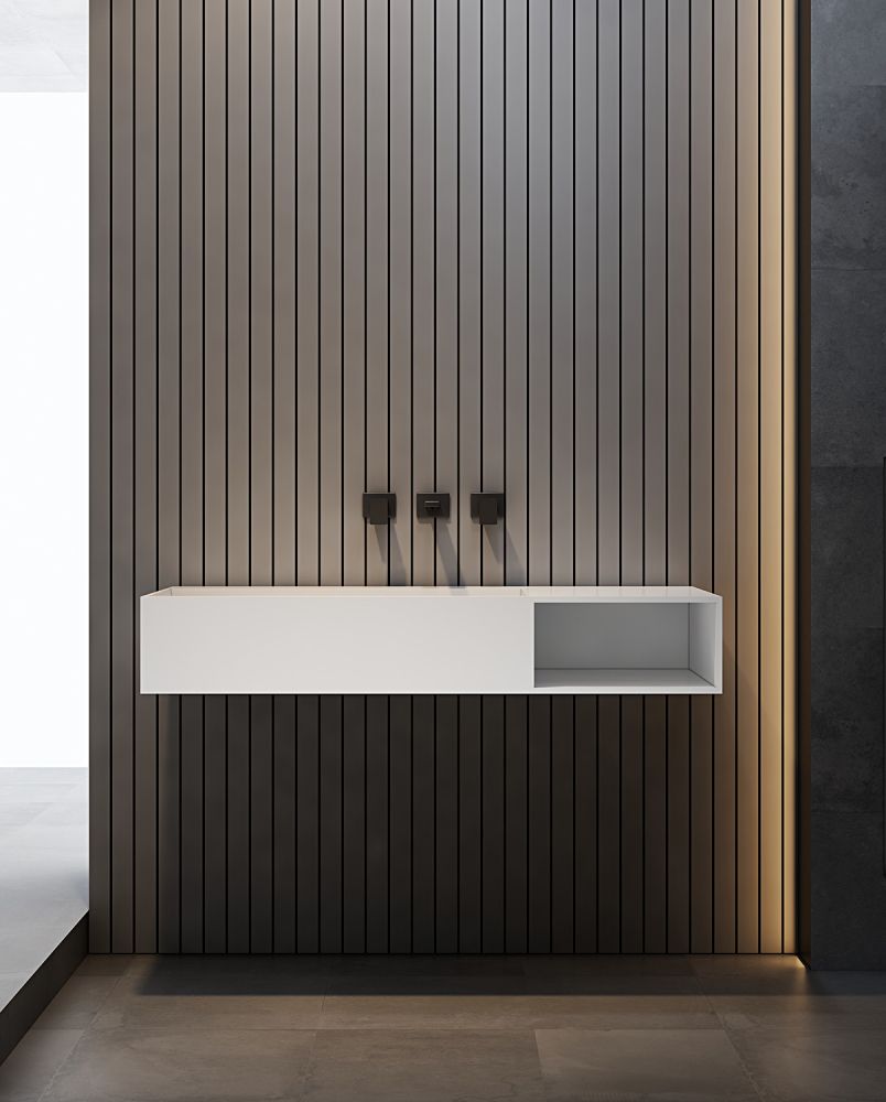 Подвесная тумба с раковиной ABBER Stein AS2640L 120см белый матовый купить