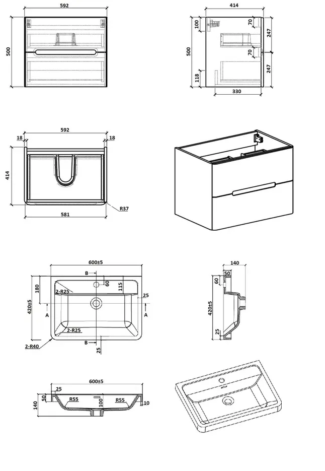Подвесная тумба с раковиной Parly Spa River60 лилейно-белый