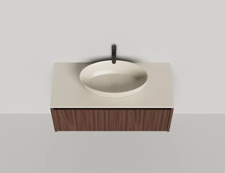 - Тумба и столешница из материала S-Stone в сборе (накладные раковины укомплектованы донным клапаном и поставляются в отдельной коробке)
