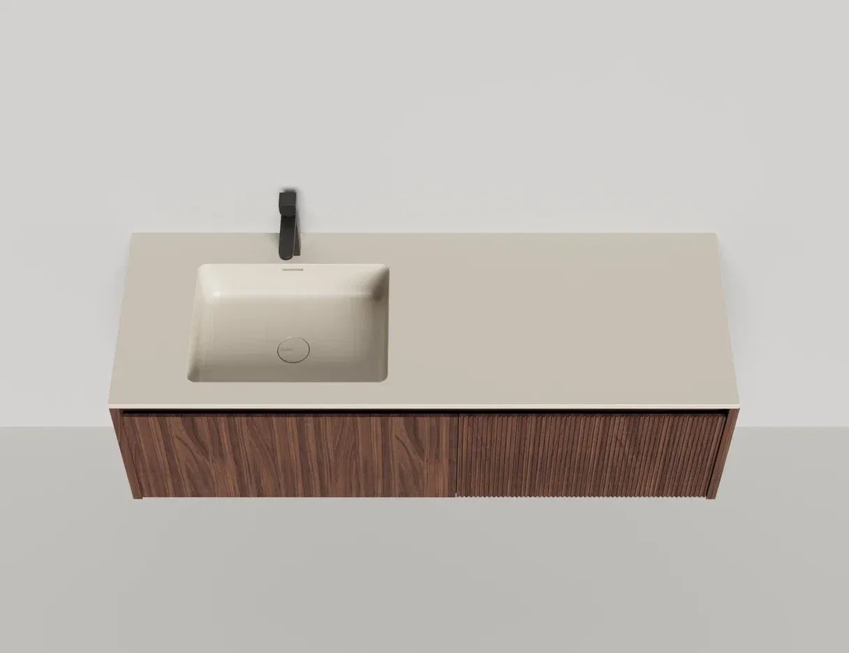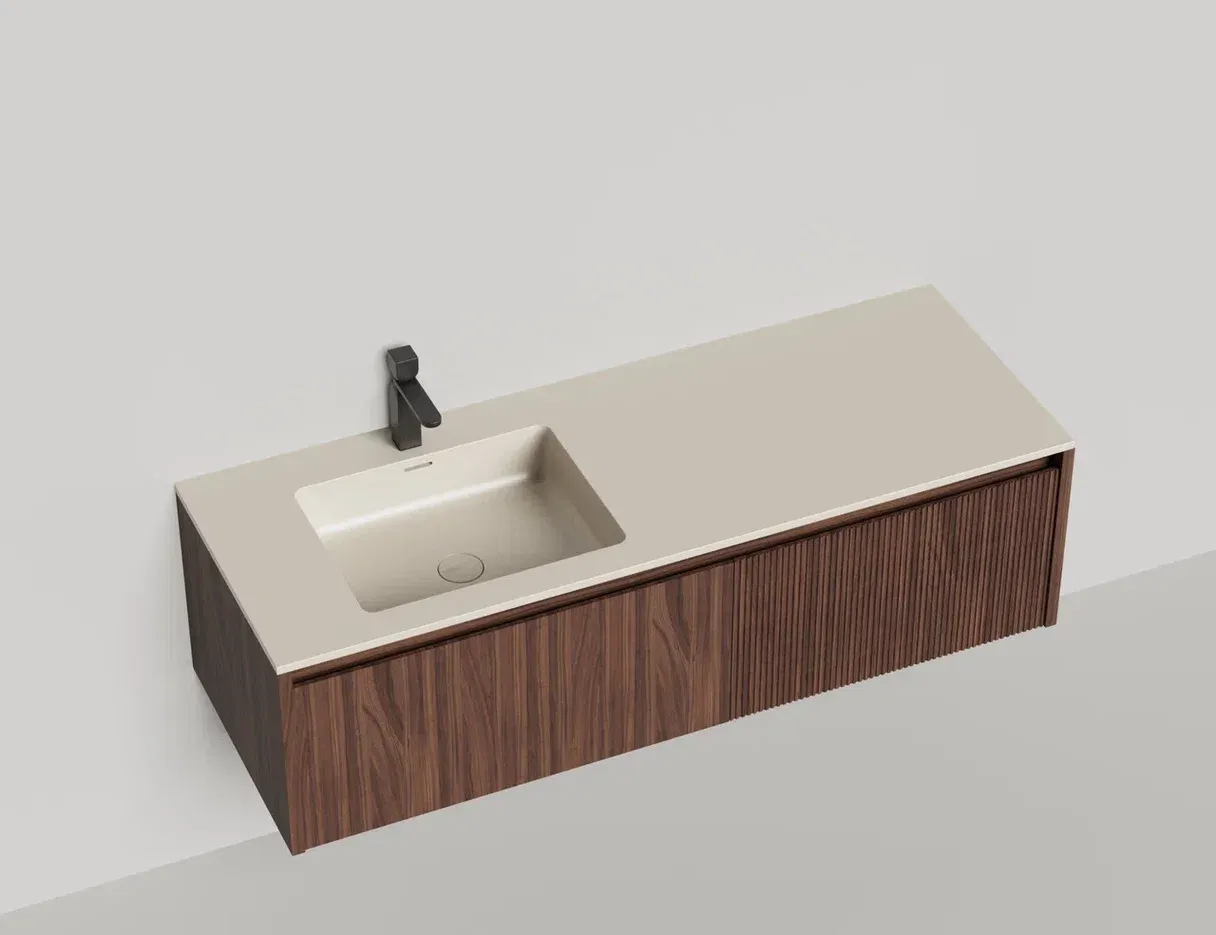 - Тумба и столешница из материала S-Stone в сборе (накладные раковины укомплектованы донным клапаном и поставляются в отдельной коробке)
