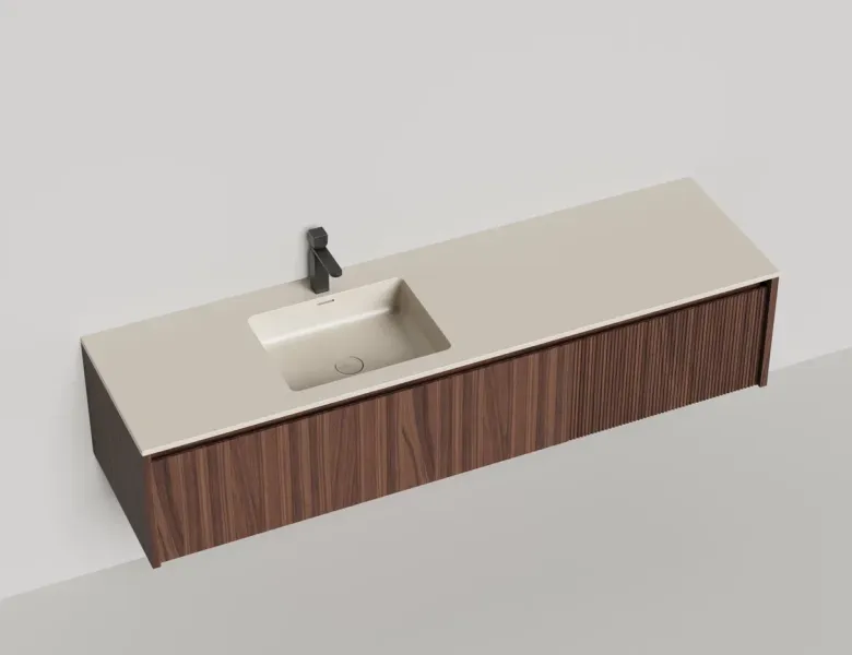 Наполнение для тумбы включает: блоки ячеек для тумб, коврики и комплект внутренней подсветки, которые помогут организовать пространство и создать более удобный доступ к вещам.Тумба DOMINO, дополненная столешницей COSTA из каменного литья S-Stone, гарантирует практичность и простоту ухода.