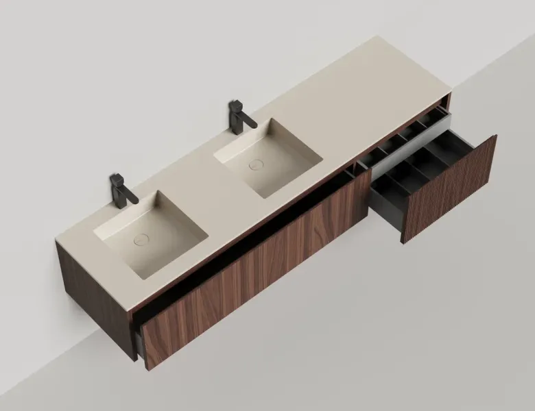 Подвесная тумба Salini Domino 27D220DINF 200см шпон с фрезеровкой для двух встраиваемых раковин