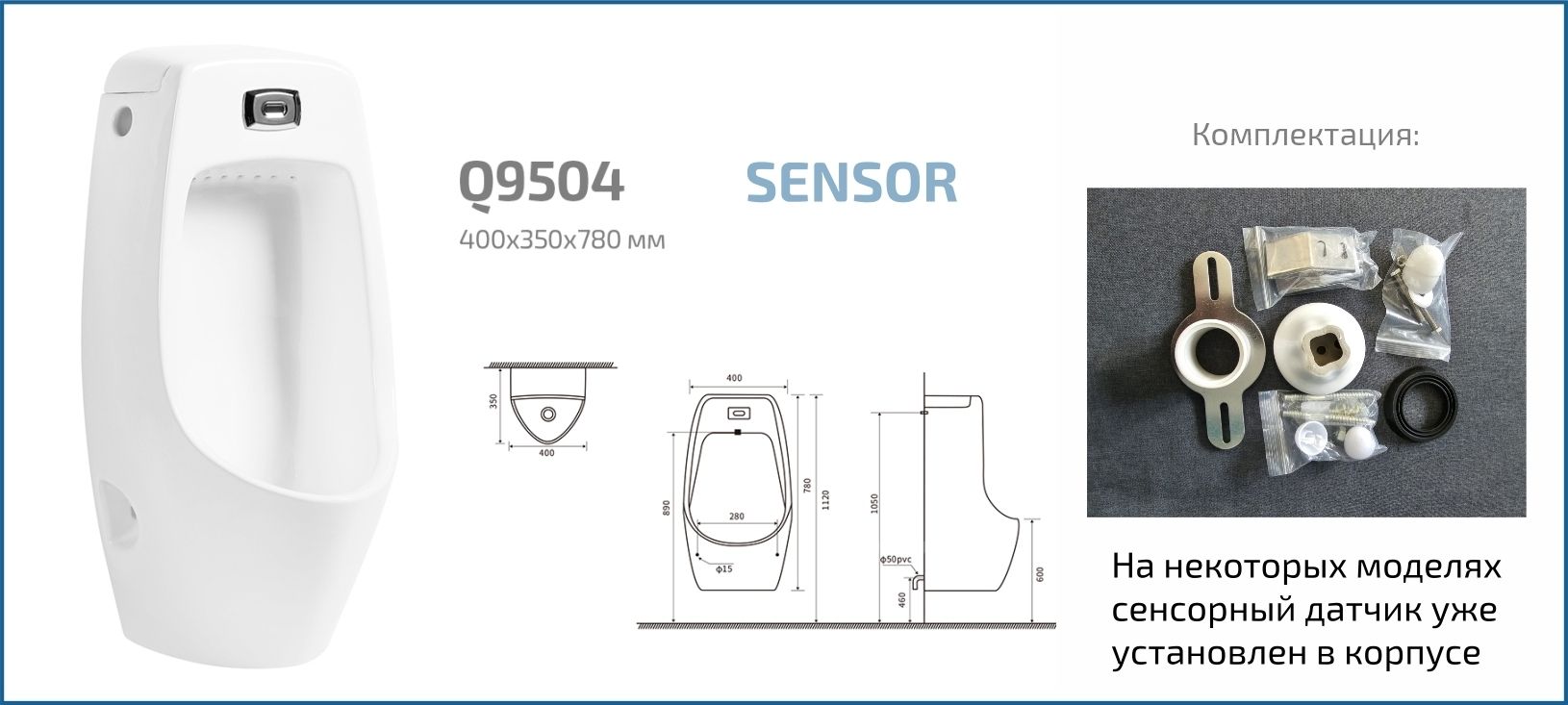 Подвесной сенсорный писсуар Gid Q9504 91108 белый 41x35x79.5