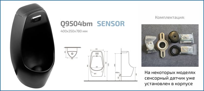 Publico — коллекция писсуаров, выполненная в строгом и лаконичном дизайне. Испанское качество и европейские стандарты соответствуют самым высоким требованиям эксплуатации. Подвесной сенсорный писсуар GiD Q9504bm изготовлен из высококачественной керамики с черным матовым покрытием, что придает ему современный и элегантный вид. Благодаря бесконтактному управлению устройство обеспечивает гигиеничность и удобство использования, автоматически активируя смыв при обнаружении пользователя. Скрытый подвод воды и настенный монтаж позволяют экономить пространство и облегчают уборку, делая эту модель идеальной для современных ванных комнат и общественных туалетов.