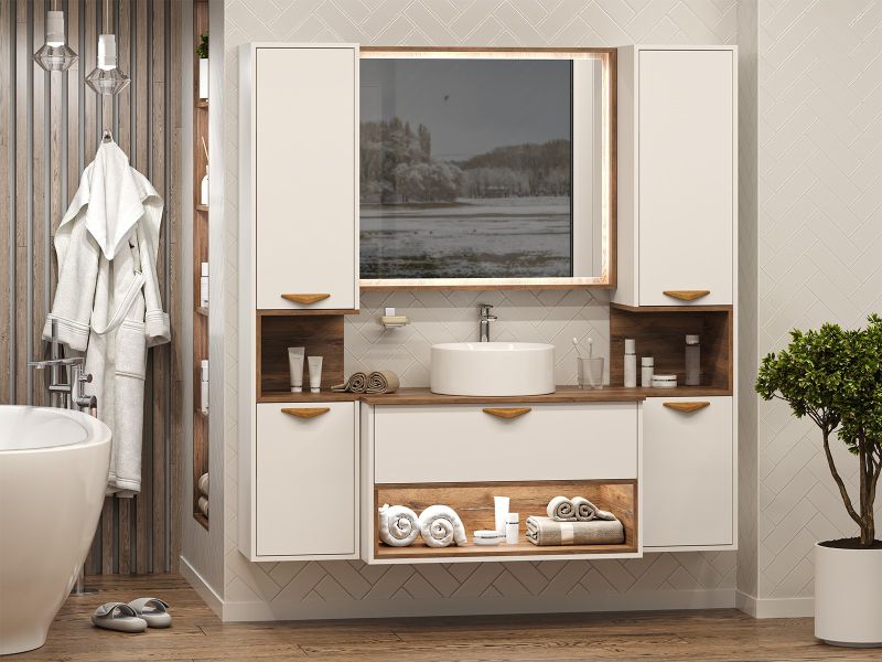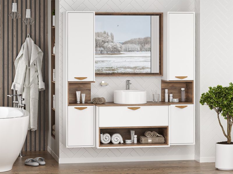 Шкаф-пенал для ванной комнаты – это стильное решение, которое гармонично вписывается в современный интерьер. Его элегантные линии и аккуратные формы создают атмосферу чистоты и порядка, что особенно важно в таком интимном пространстве. Изготовленный из качественных влагостойких материалов, этот шкаф обеспечивает долговечность и надежность, даже в условиях повышенной влажности.Основное преимущество шкаф-пенала заключается в его вместительности. Удобные полки и ящики позволяют организовать пространство и разместить все необходимое: от косметики до бытовых принадлежностей. Каждая деталь продумана для удобства использования, что делает утренние и вечерние ритуалы более приятными.Будь то строгий минимализм или уютный скандинавский стиль, шкаф-пенал станет акцентом, который подчеркивает индивидуальность вашего пространства. Не упустите возможность преобразить свою ванную комнату, добавив в нее этот элегантный и практичный элемент.