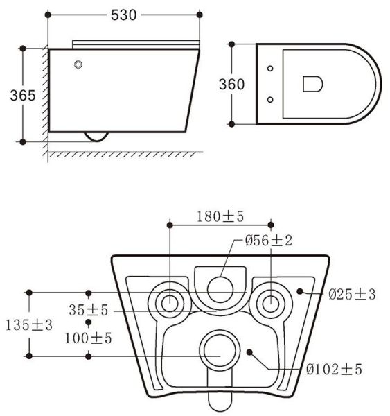• Прилегание унитаза к стене: