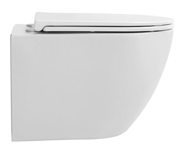 Подвесной безободковый унитаз с системой скрытого монтажа, крышкой-сидением из дюропласта с функцией soft-close и quick release.