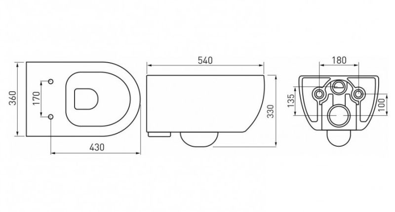 • Прилегание унитаза к стене: