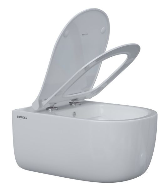 Подвесной унитаз Berges EGO XL Rimless 082138 с функцией биде сиденье дюропласт Okus Slim SO белый