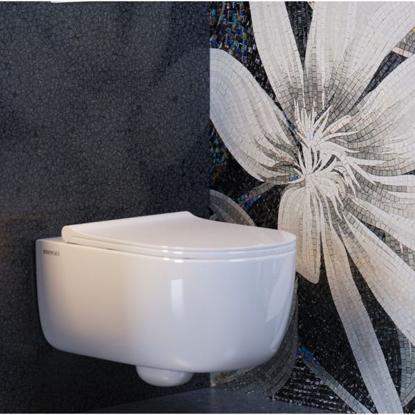 Подвесной унитаз Berges EGO XL Rimless 082138 с функцией биде сиденье дюропласт Okus Slim SO белый купить