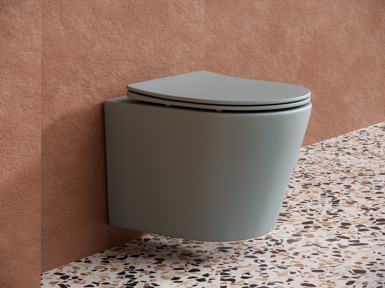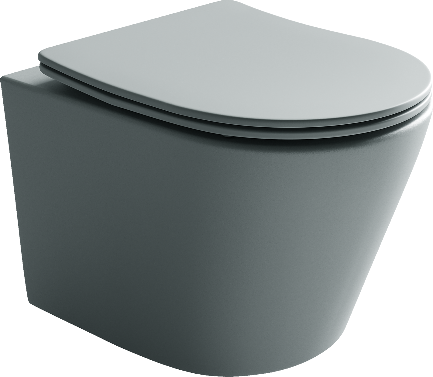 Подвесной унитаз Balearica Rimless (цвет Антрацит Матовый), глубокий смыв, с крепежом для полностью скрытого монтажа, ультра тонким с сидением и крышкой с функцией плавного закрытия, дюропласт