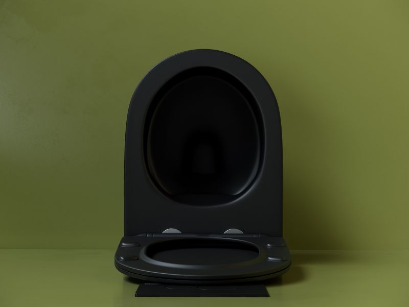 Подвесной унитаз Uno Rimless, глубокий смыв, с крепежом для полностью скрытого монтажа, ультратонким сидением и крышкой с функцией плавного закрытия, цвет чёрный матовый