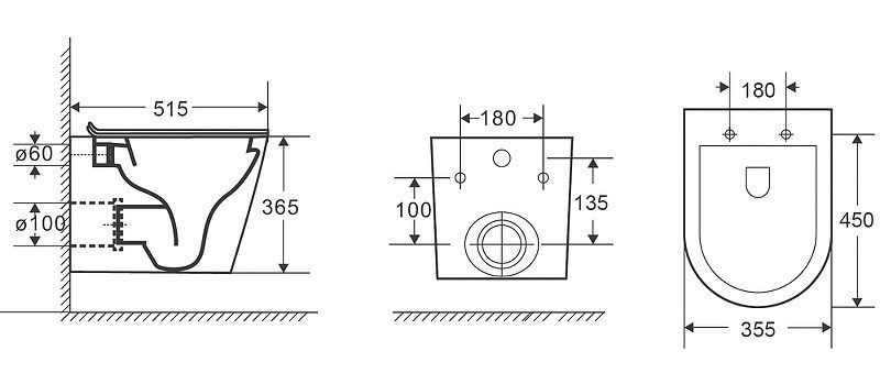 Монтаж: подвесной, крепление к стене.