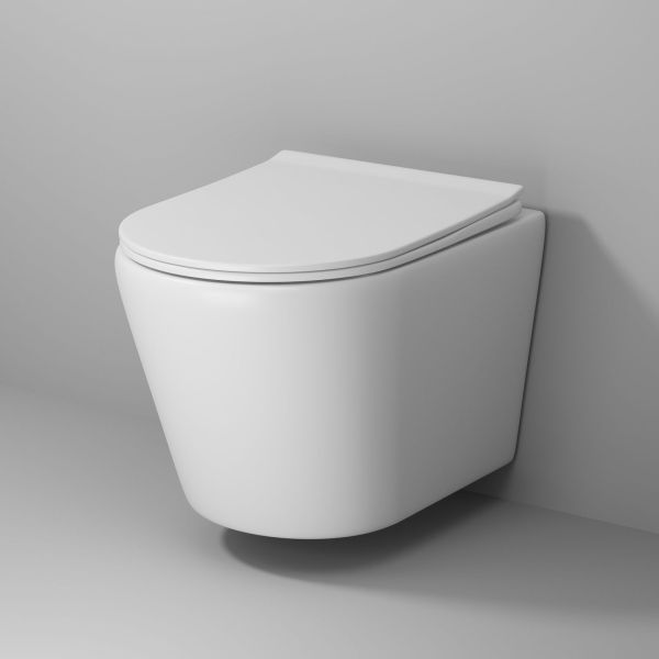 Унитаз GR-4478MS Fly (520*360*350) БЕЛЫЙ МАТОВЫЙ подвесной БЕЗОБОДКОВЫЙ с тонкой крышкой