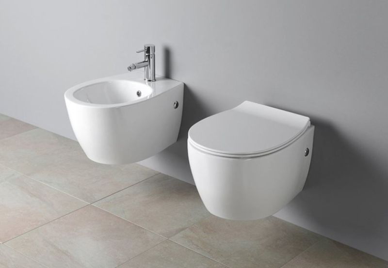 • Прилегание унитаза к стене: