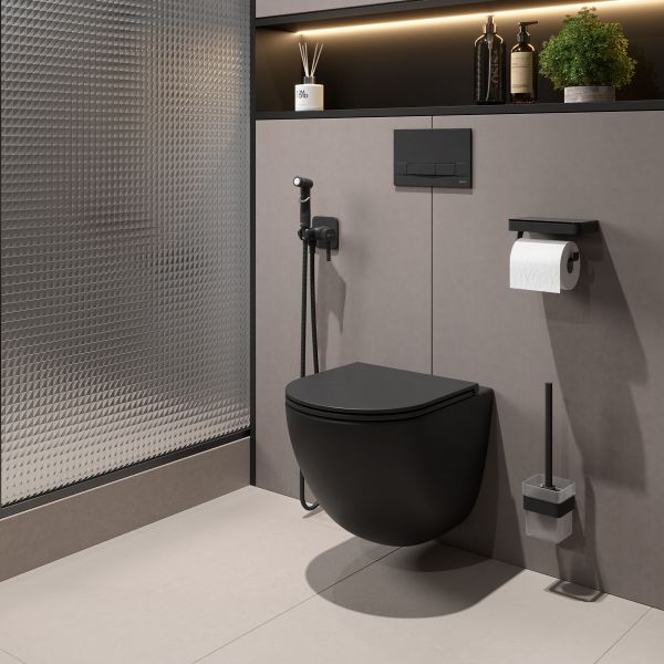 Подвесной унитаз Lemark Glazer 9612004 безободковый с сиденьем микролифт чёрный матовый купить