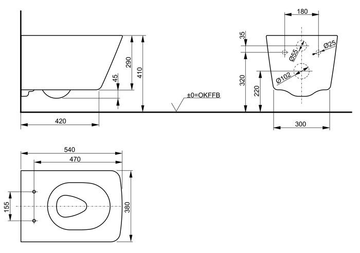 Унитаз подвесной безободковый380x540x335 мм, без сиденья, цвет: белый