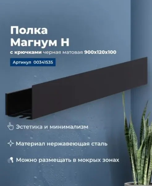 Полка Aquanet Магнум Н 90x12 черная матовая, с крючками — это компактное и стильное решение для организации пространства, которое сочетает в себе функциональность и современный дизайн. Вот ее основные характеристики и преимущества:
