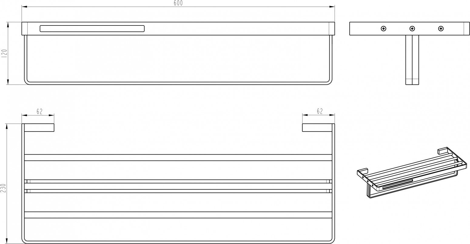 Полка Boheme Q 10947-CR-B для полотенец великолепно подойдет как для просторного помещения, так и для небольшой ванной комнаты. Серия Q отличается превосходным дизайном с соблюдением всех важных элементов современного стиля.Бренд Boheme в своей продукции использует идеальное, сочетание материалов (латунь) высокого качества, с абсолютным отсутствием вредных для здоровья веществ. Хром / черный, основной цвет исполнения Boheme Q, гармонирующий с большинством интерьерных решений. Ключевые габариты изделия: ширина 60 см, глубина 23 см, высота 12 см. Прямоугольная форма 10947-CR-B прослеживается во всех линиях и придает аксессуару неповторимый стиль. Полка размещается в наиболее удобном положении на стене благодаря подвесному способу установки.Страной бренда Boheme является Италия, все товары производятся с выполнением соответствующих стандартов качества, что позволяет быть полностью уверенными в долговечности и надежности. Полка Boheme Q 10947-CR-B для полотенец поможет сделать уютным любой интерьер и создать идеальную ванную комнату.