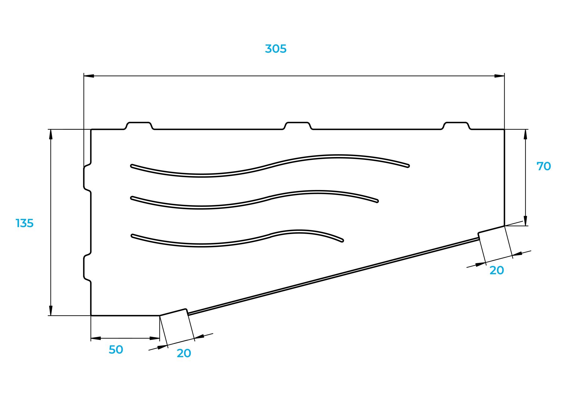 Полки для душевой зоны, разработанные специально для монтажа после завершения ремонта, т. е. укладки плитки. Легко устанавливаются в любые угловые зоны в помещении, для этого прорезается шов между плитками, далее полочка вклеивается между плиткой на любой бытовой герметик.