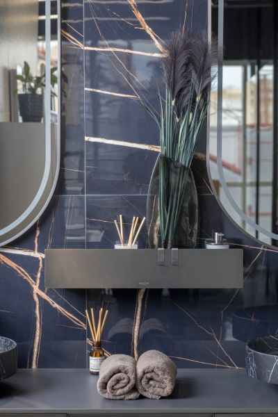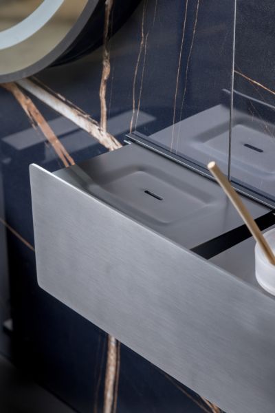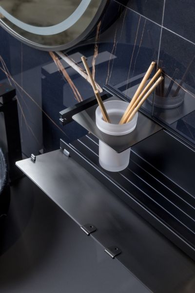 Полка Boheme Space идеально подходит для использования как в мокрых, так и в сухих зонах. Открывающаяся передняя часть комфортна для ухода.