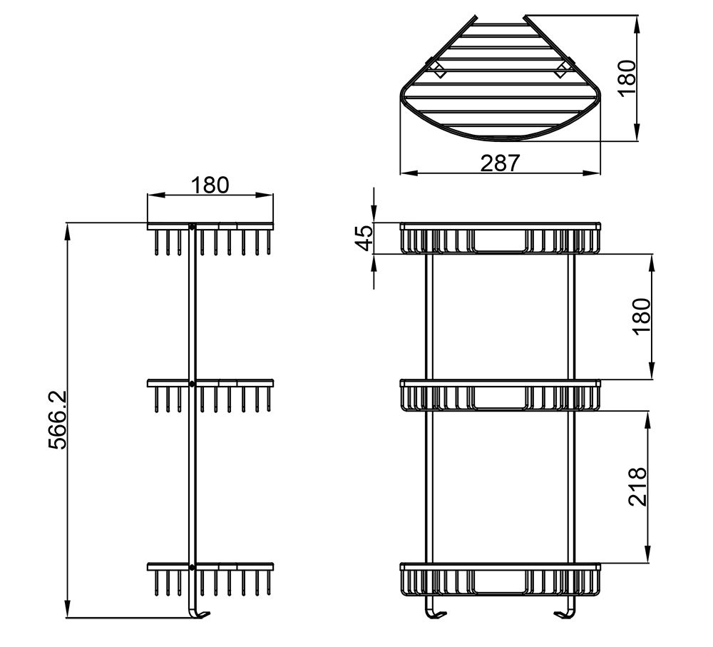 Полка угловая Azario ALTRE AZ-814-3 трехэтажная, матовый хром