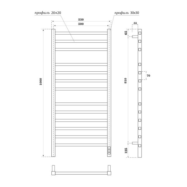Полотенцесушитель электрический APEXTERMO Atlas AT00105GF 1000x500 графит металлик