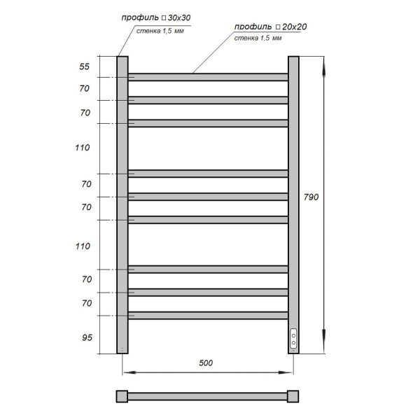 Полотенцесушитель электрический APEXTERMO Atlas AT00185WM 800x500 белый матовый