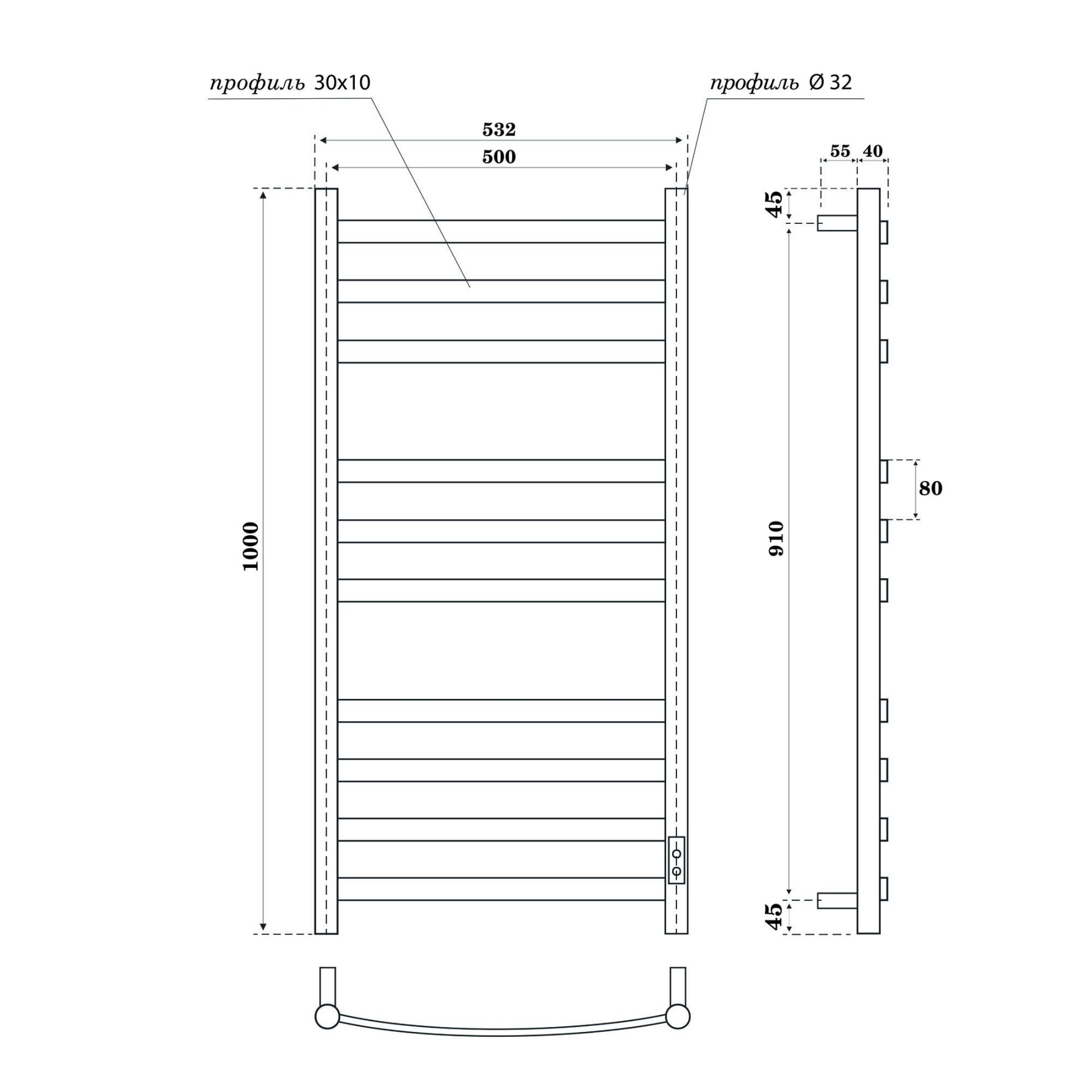 Полотенцесушитель электрический APEXTERMO Umbra UM00105WM 1000x500 белый матовый