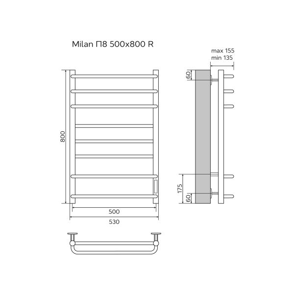 Полотенцесушитель электрический AZARIO MILAN AZ90858 500/800 8 секций, тен справа, хром