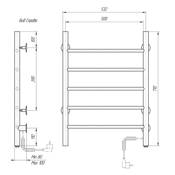 Количество перекладин: 5Коллекция: АврораТип: электрическиеЦвет: белыйМощность, Вт: 55Ширина (мм): 532Высота (мм): 710Глубина (мм): 80-100Вес: 3,9Объем: 0,0418Тэн/подключение: справаСтрана: РоссияГарантия: 2 года