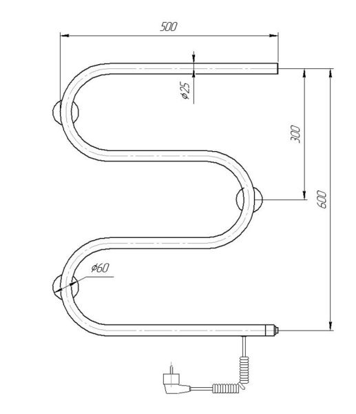Электрический полотенцесушитель М-образный из нержавеющей стали.