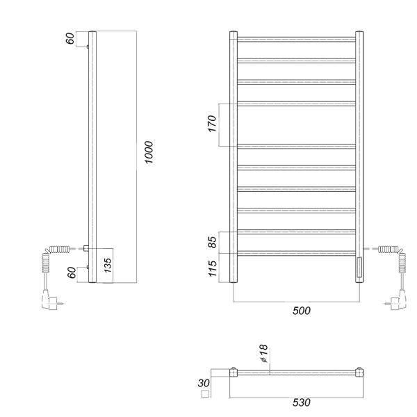 М/о расстояние (межосевое расстояние): 500Количество перекладин: 10Коллекция: КубаТип: электрическиеЦвет: белыйМощность, Вт: 113Ширина (мм): 532Высота (мм): 1000Глубина (мм): 80-90Вес: 6,1Объем: 0,075Тэн/подключение: справаСтрана: РоссияГарантия: 2 года