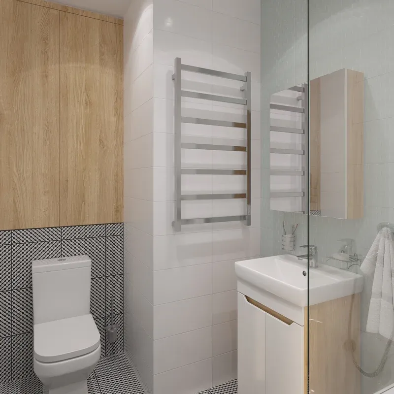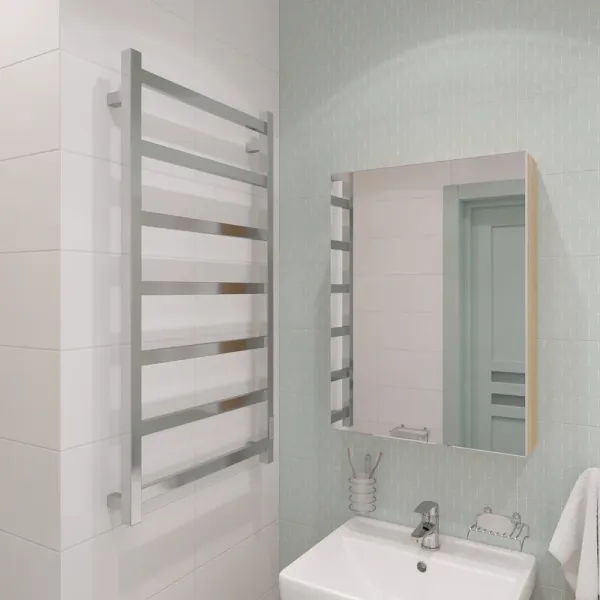 Для ванных комнат площадью до 4 м², где важно сохранить лаконичный дизайн и избежать сложного монтажа. Хромированная поверхность harmoniously сочетается с современной сантехникой и мебелью.