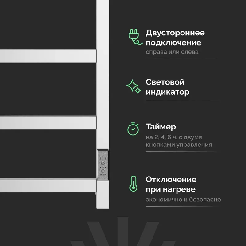 Электрический полотенцесушитель EWRIKA Пенелопа KV7 — это современное решение для поддержания комфортного микроклимата и быстрой сушки полотенец в ванной комнате. Модель с лаконичным дизайном и хромированным покрытием сочетает ease of use, экономичность и устойчивость к влажной среде.