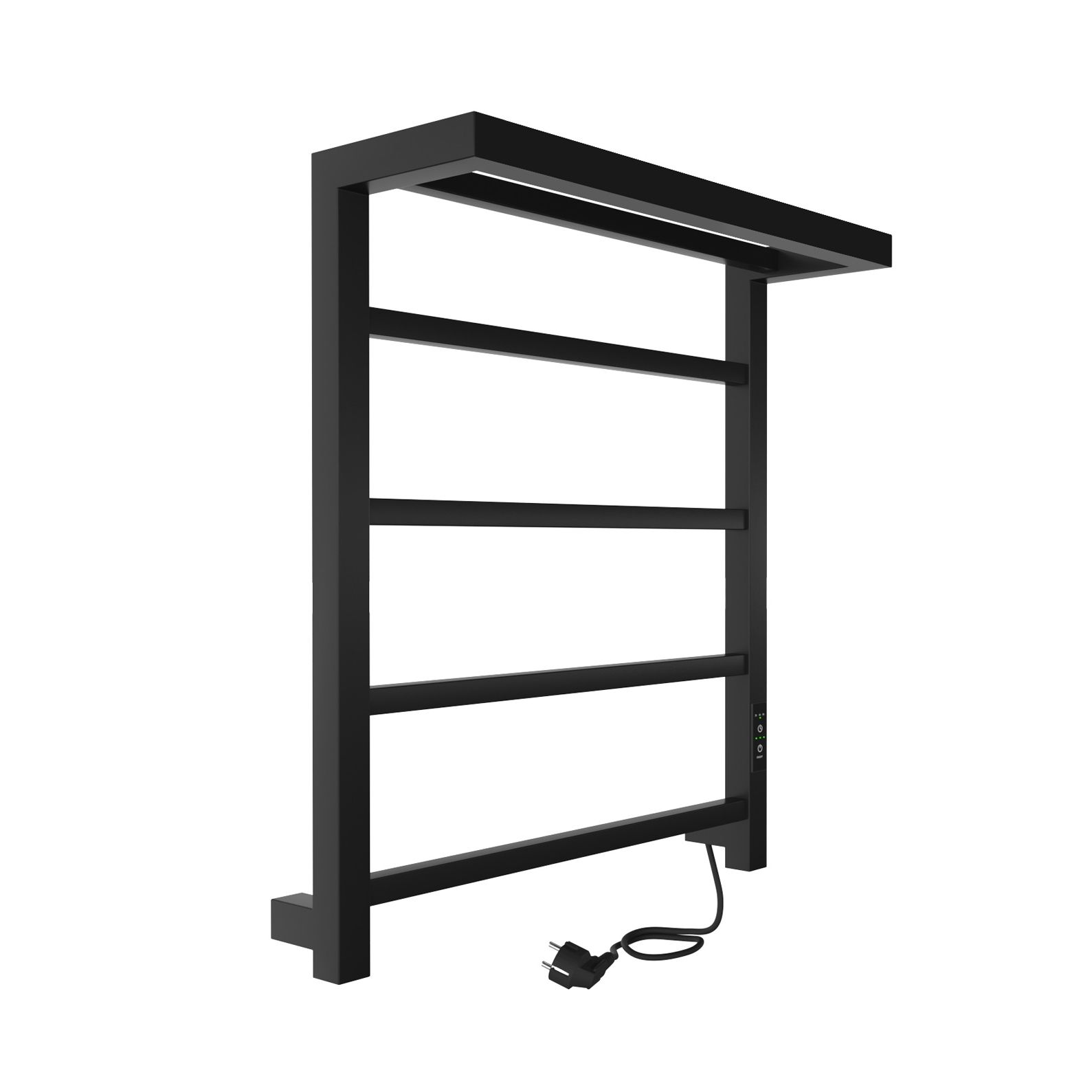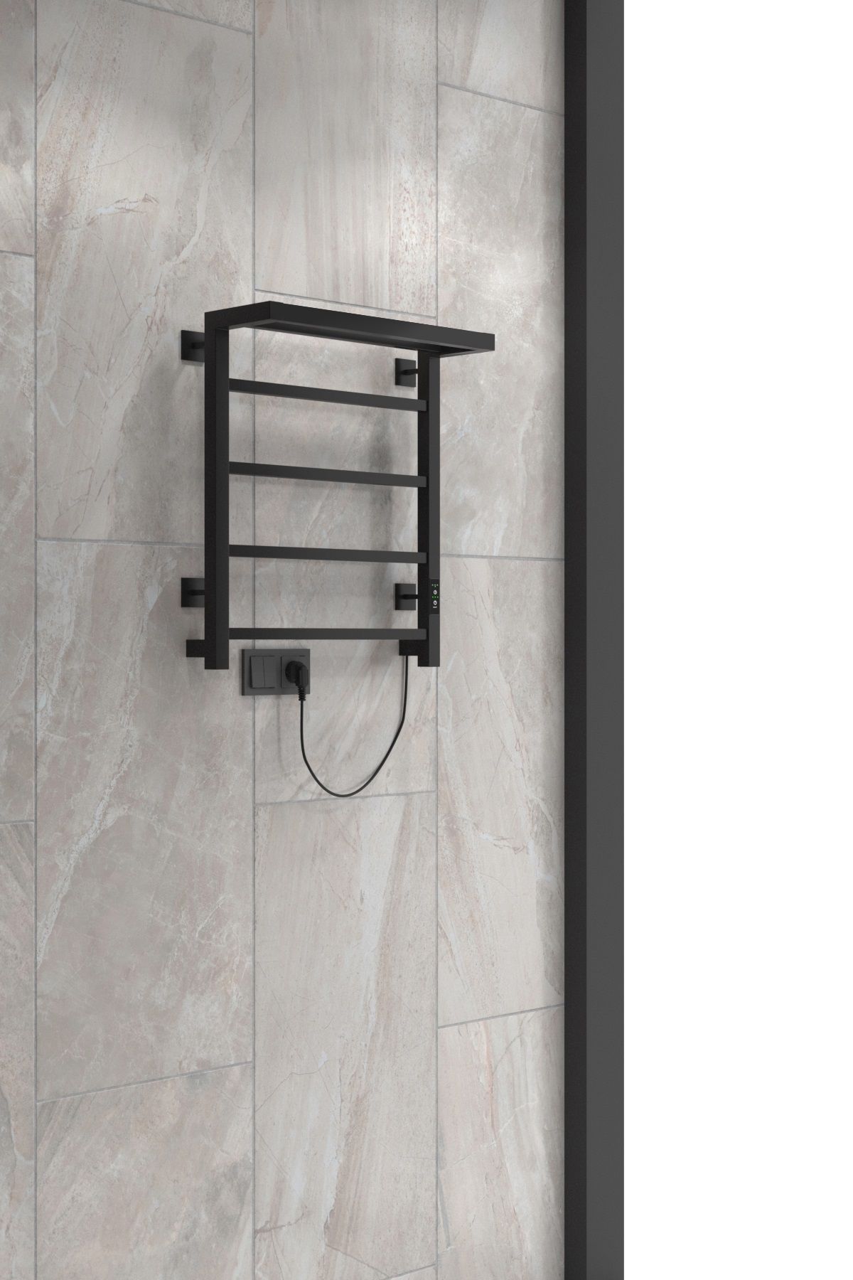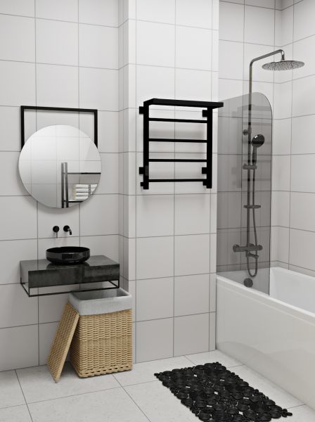 Полотенцесушитель электрический INDIGO Forma в цвете «Черный Муар». Модель имеет терморегулятор нагрева, у которого три режима: 40, 45, 50 градусов и таймер на отключение через 2, 4, 6 часов. Универсальность изделия предусматривает подключение через прямой провод или скрытое подключение без покупки дополнительного переходника. Длина прямого провода 1,1 метра.
