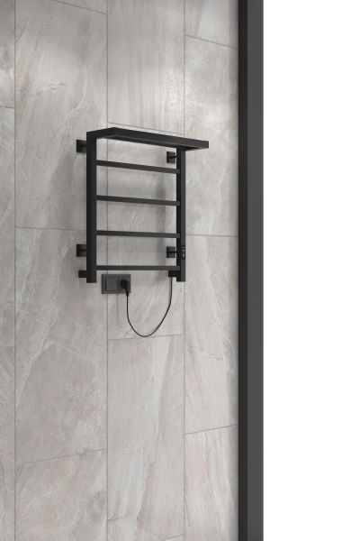 Полотенцесушитель электрический Indigo Forma LEF60-50BRRt с полкой 60x50 см чёрный муар