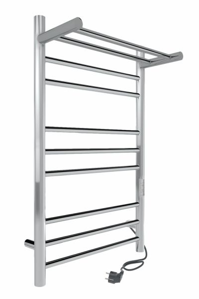 Дополнительная полка для полотенец, халатов и других мелочей обеспечит равномерную просушку, может использоваться как сушилка для полотенец.  Полотенцесушитель марки INDIGO выполнен из нержавеющей стали. 8 перекладин и наличие полочки являются преимуществом и неоспоримым достоинством данной модели.